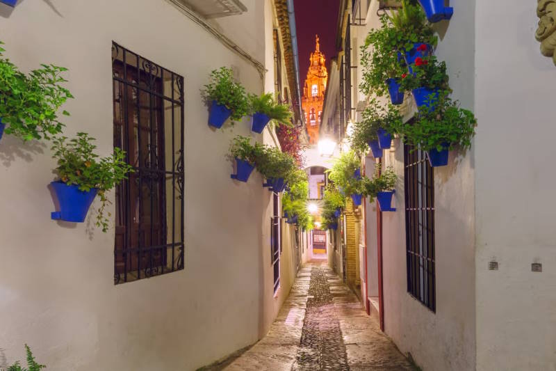 El paseo nocturno comienza en la Plaza de las Tendillas, ubicada en el corazón de Córdoba, a pocos metros de la famosa Gran Mezquita. Desde este punto de encuentro, iniciamos una visita guiada que se adentra en las calles más emblemáticas de la ciudad, como la callejuela de las Flores y la calle del Pañuelo. Estos lugares, cargados de historia y leyendas, nos ofrecen una visión encantadora de Córdoba bajo la iluminación nocturna.