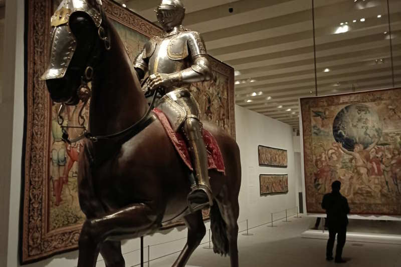 La sección dedicada a los Austrias es igualmente fascinante, destacando la impresionante escultura del arcángel San Miguel venciendo al demonio, obra de La Roldana, y el famoso lienzo del caballo blanco sin jinete, pintado por el renombrado artista Diego Velázquez. También observaremos una armadura para caballo y jinete que perteneció a Carlos I.